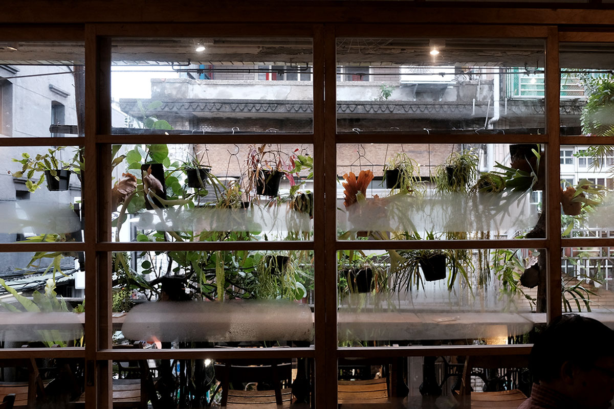 吊掛著滿滿的綠色植物,大療癒,人跟植物一樣都需要陽光及空氣大口呼吸。