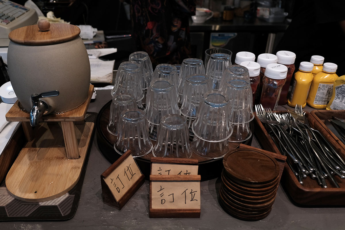 開水自取,小水壺超可愛的!旁邊有番茄醬、芥末醬可使用。另外,如有訂位需求可致電店家看看,網路連結似乎不提供線上訂位,這邊就不貼出了。