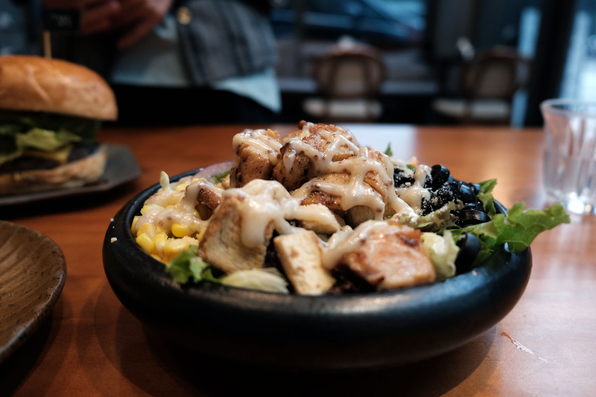 低消為每人分開計算,其實蠻容易達成的,光漢堡的品項就好豐富,還有沙拉、炸物和甜點可選,且既然店名有 Cafe 這四字代表咖啡應該也是有一定水準,不過吃漢堡平常習慣就是要配可樂,只好下次再來點了。