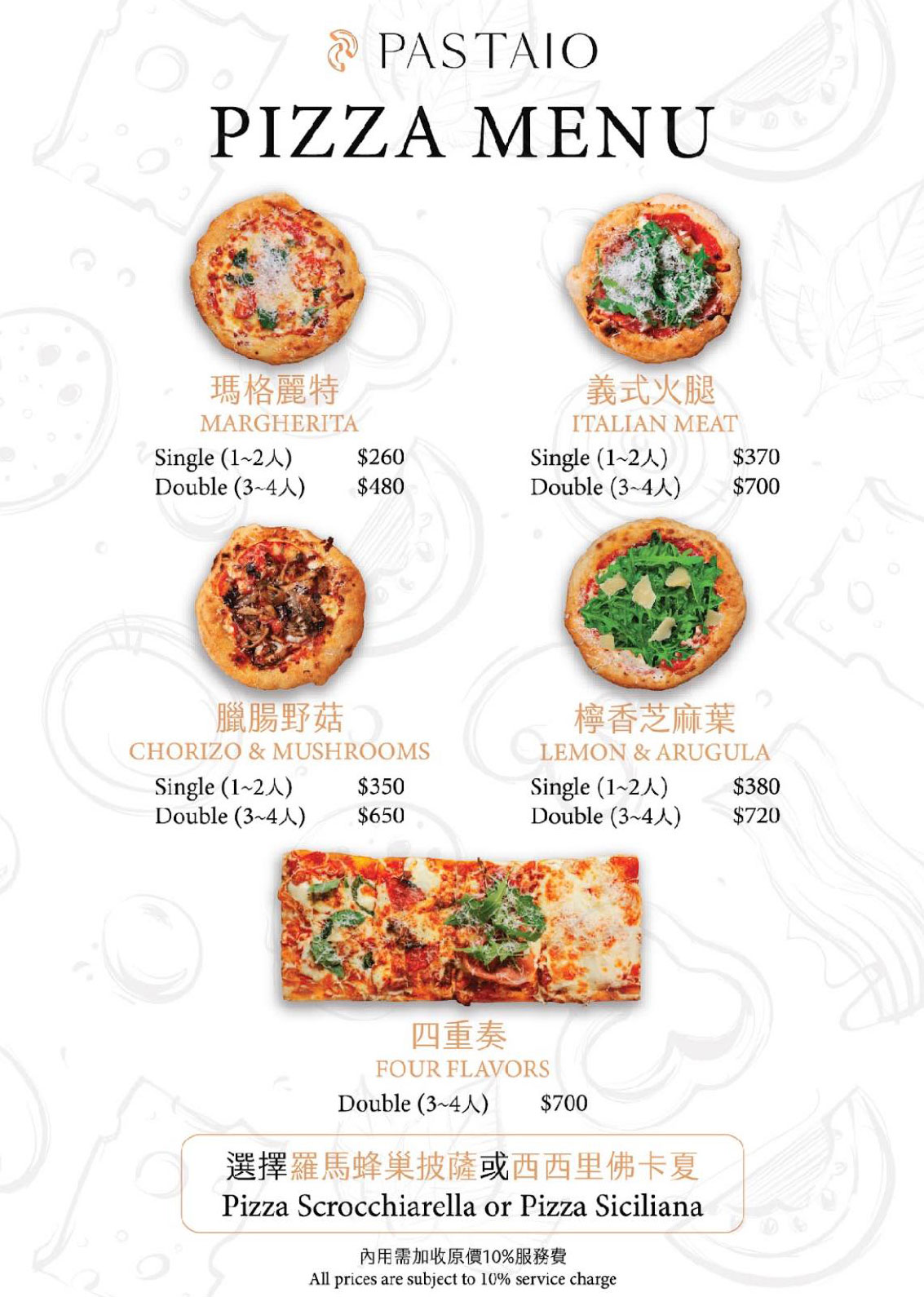 披薩有分大小尺寸,方形造型在台灣比較少見,烤得香香酥酥的口感很棒,我覺得很好吃。