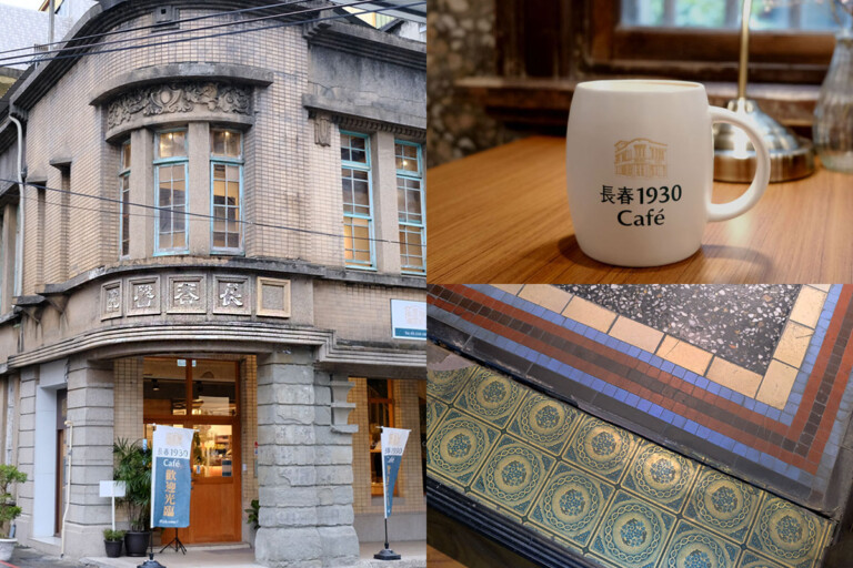 轉角處這棟典雅洋房,就是長春 1930 Cafe,舊時的長春醫院招牌仍保留在門前。一樓是提供咖啡與甜點的小巧空間,二樓則規劃為藝文展覽區,展示著家族歷史與長春醫院相關文獻,讓老建築多了一份故事感與文化氛圍。