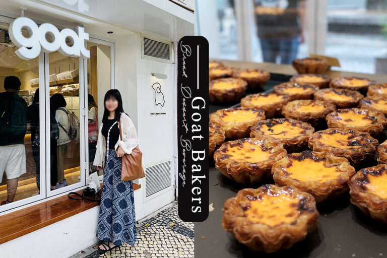澳門這間 Goat Bakers 的店面十分可愛,純白色底的裝潢光門口就好好拍,看店家去年的照片都要大排長龍,想吃還不一定買的到的那種,這次去很幸運沒等多久就買到了。必買品項有奶酪花杯子和蛋撻,巧克力可頌也好吃,整體覺得很值得一試喔!