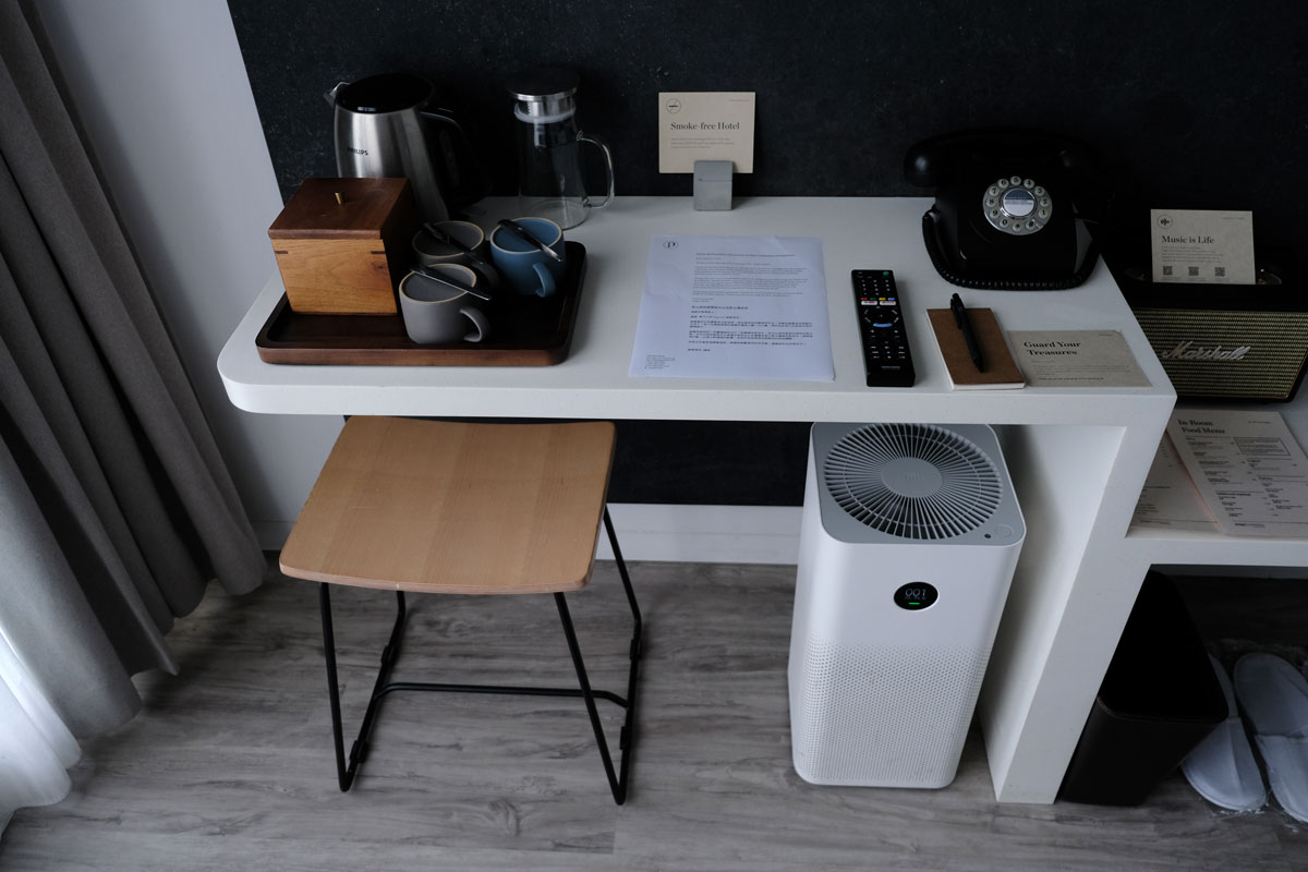 小米的空氣清淨機和 Marshall 藍芽音響。音響放了很讚,不過太晚就沒有使用,想說還是不要讓音樂聲影響到其他旅客。住宿期間整體隔音還可以,不論白天或晚上都沒有聽到太多外面走廊和隔壁房的聲音,可享有舒適的睡眠品質。