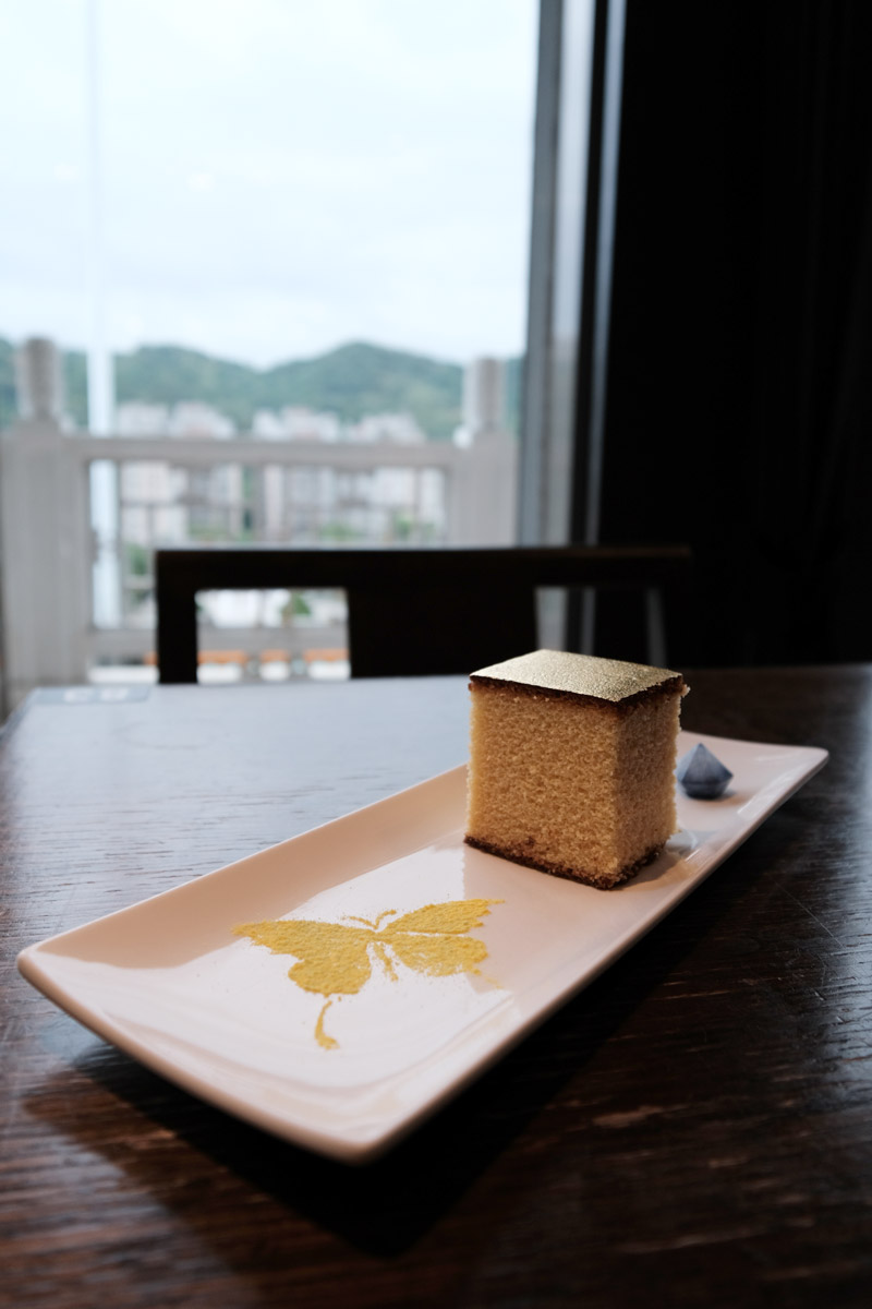 今天點了招牌金箔蜂蜜蛋糕,上面的金箔確實蠻吸睛的,一旁還有蝴蝶畫盤裝飾,拍好拍滿才動口。口味就是中規中矩的蜂蜜蛋糕,不算難吃,但比較偏向體驗型甜點,嚐過體驗過即可哈。
